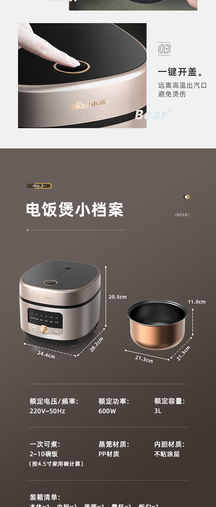 小熊 微电脑智能电饭煲 DFB-P30M3 3L
