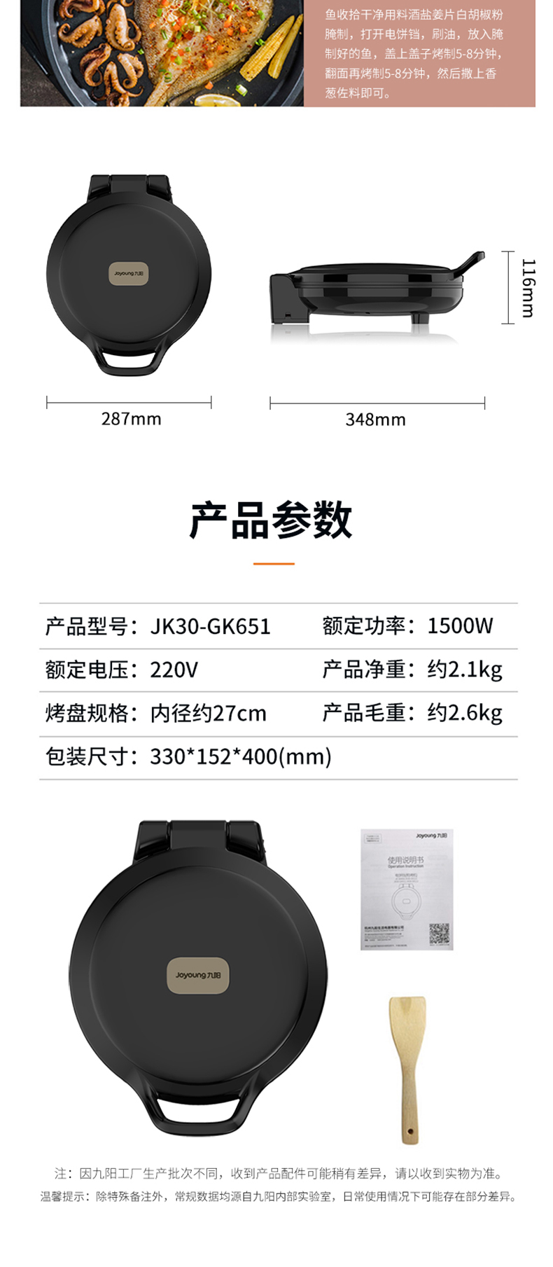 九阳 电饼铛烙饼机双面加热 JK30-GK651