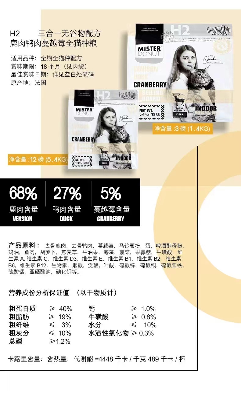 汤恩贝 美仕猫粮1.4KG H2鸭肉蔓越莓健康体态成猫粮