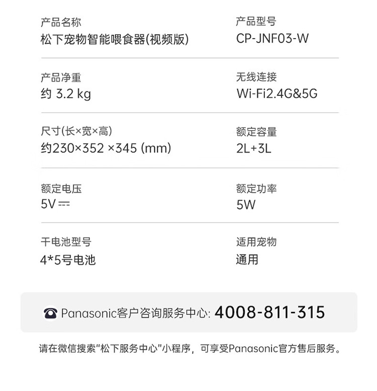 松下宠物智能喂食器 视频款CP-JNF03-W