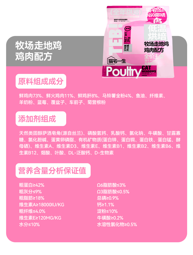 汤恩贝 低温烘焙猫粮 鸡肉配方2KG
