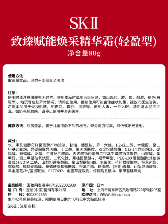 SK-II 赋能焕彩精华霜大红瓶面霜清爽轻盈版 80g