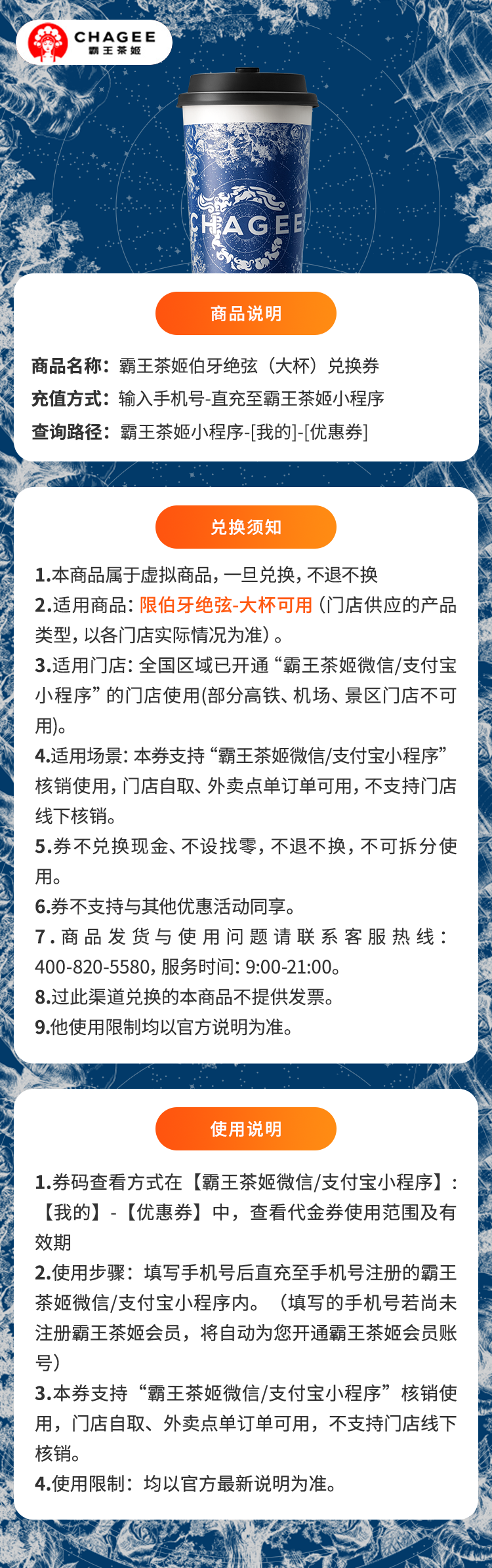 【直充】霸王茶姬 兑换券 伯牙绝弦-大杯
