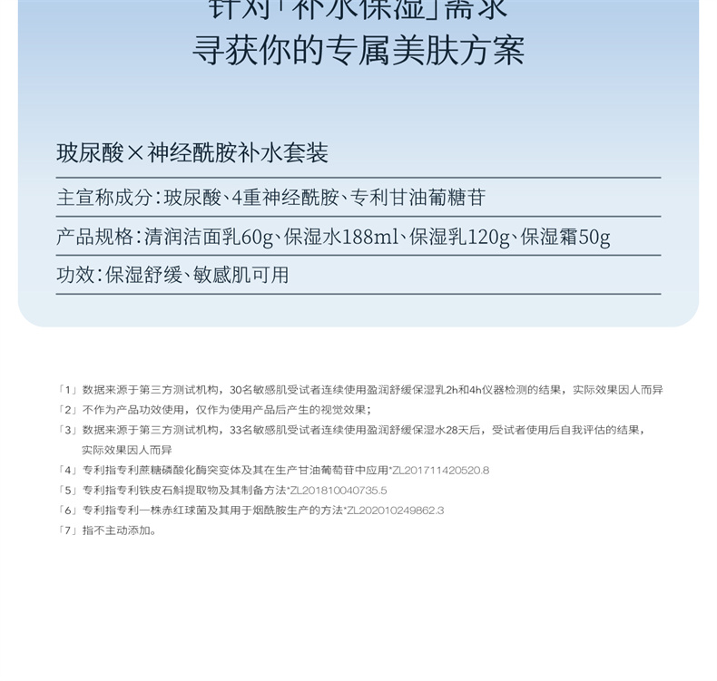 含洁面乳60g、爽肤水188ml、修护乳120g、保湿霜50g