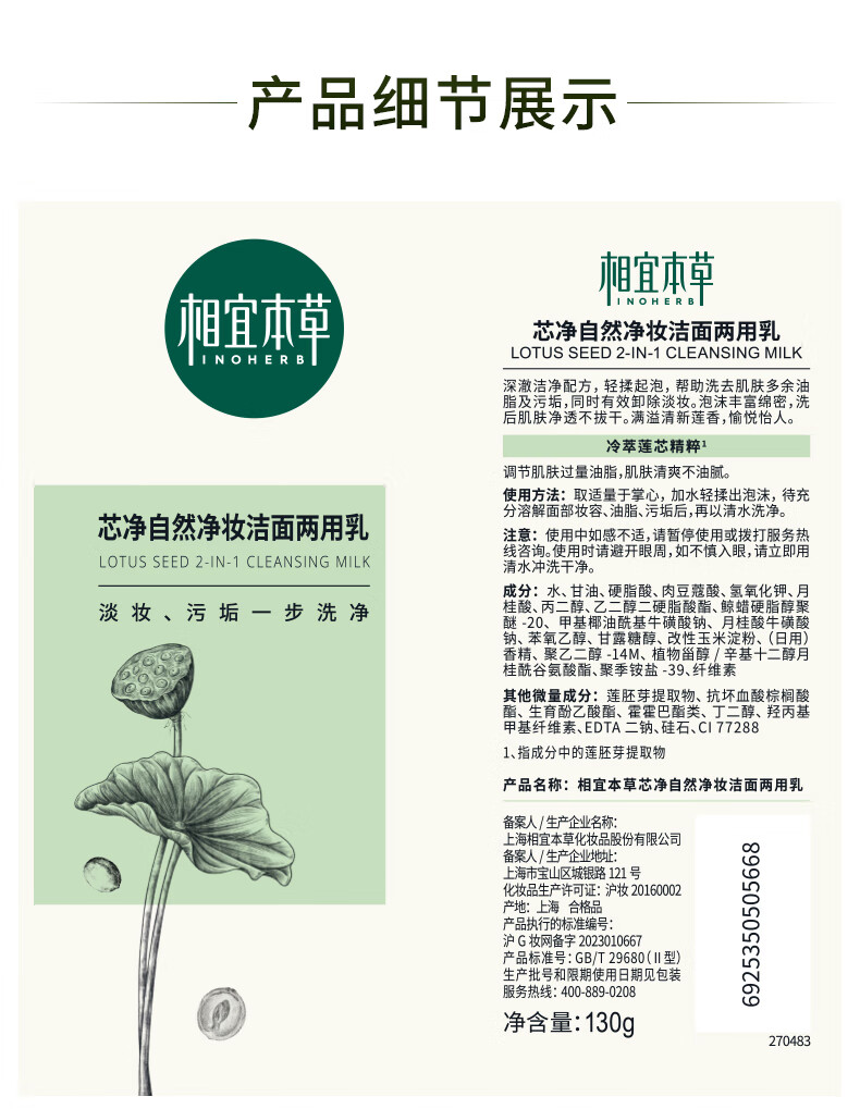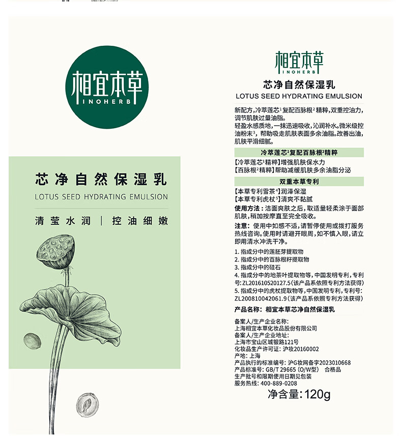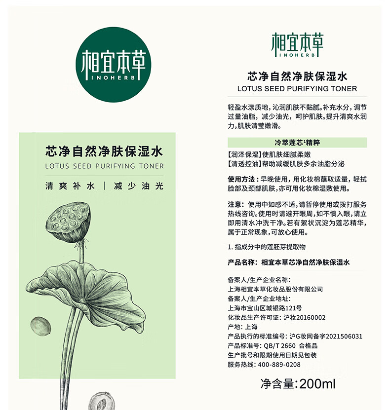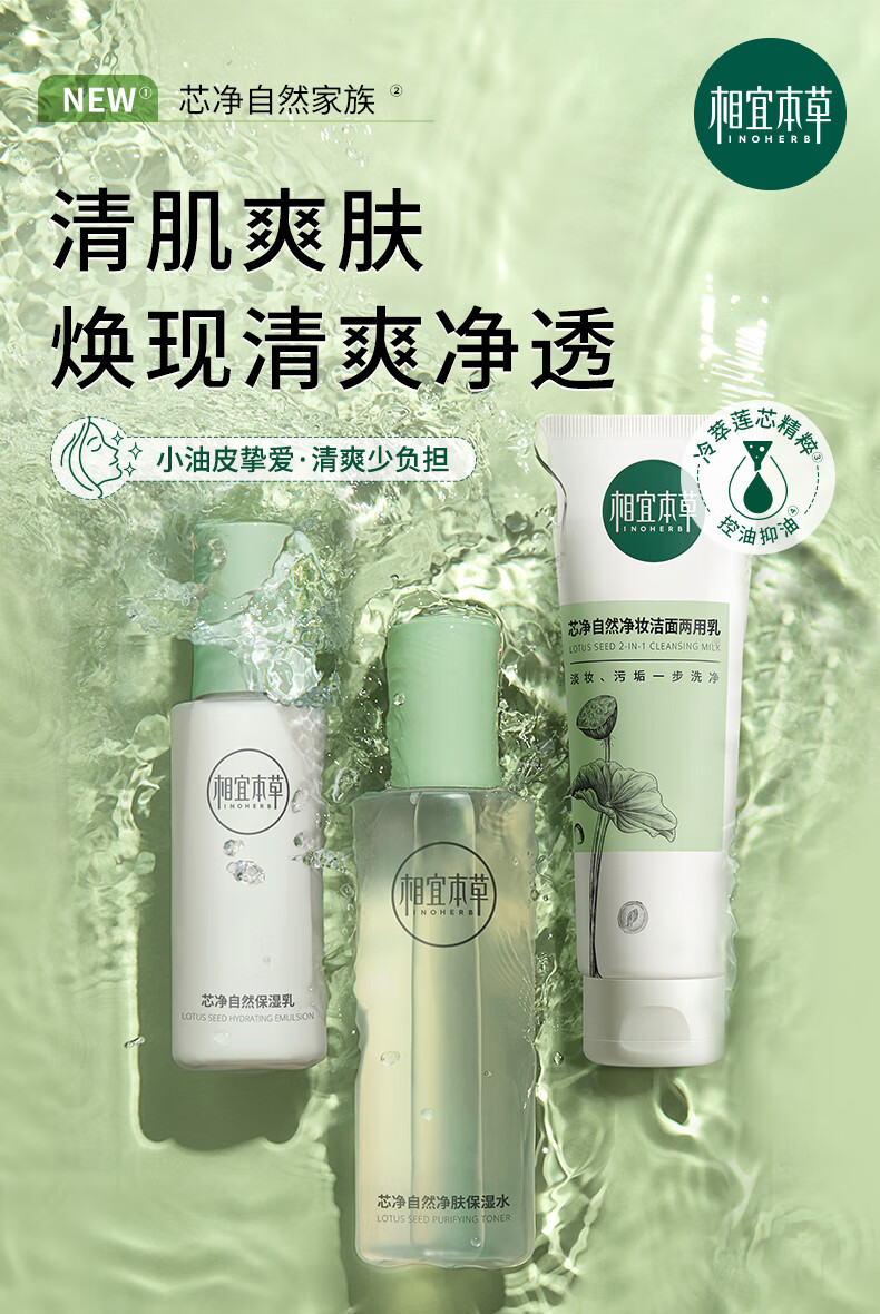相宜本草芯净护肤套装 (洁面130g+保湿水200ml+保湿乳120g)