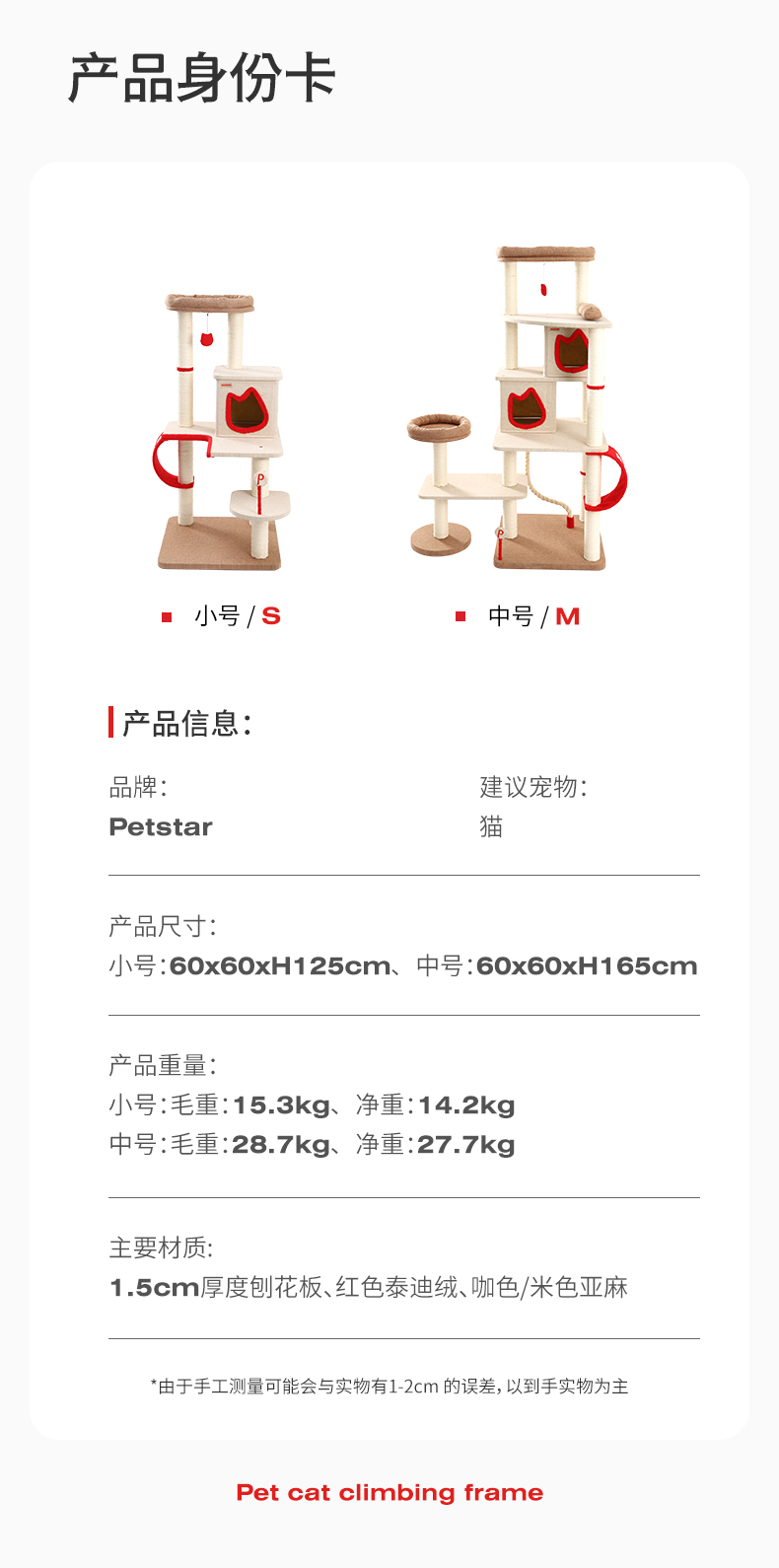 S-60*60*h125cm M-60*60*h165cm |