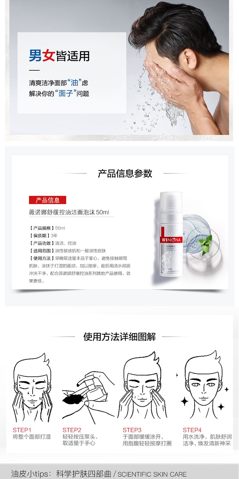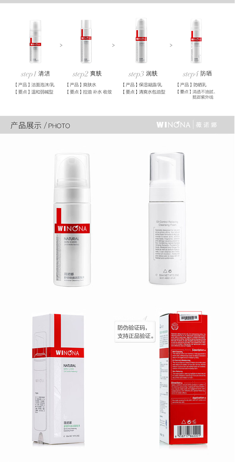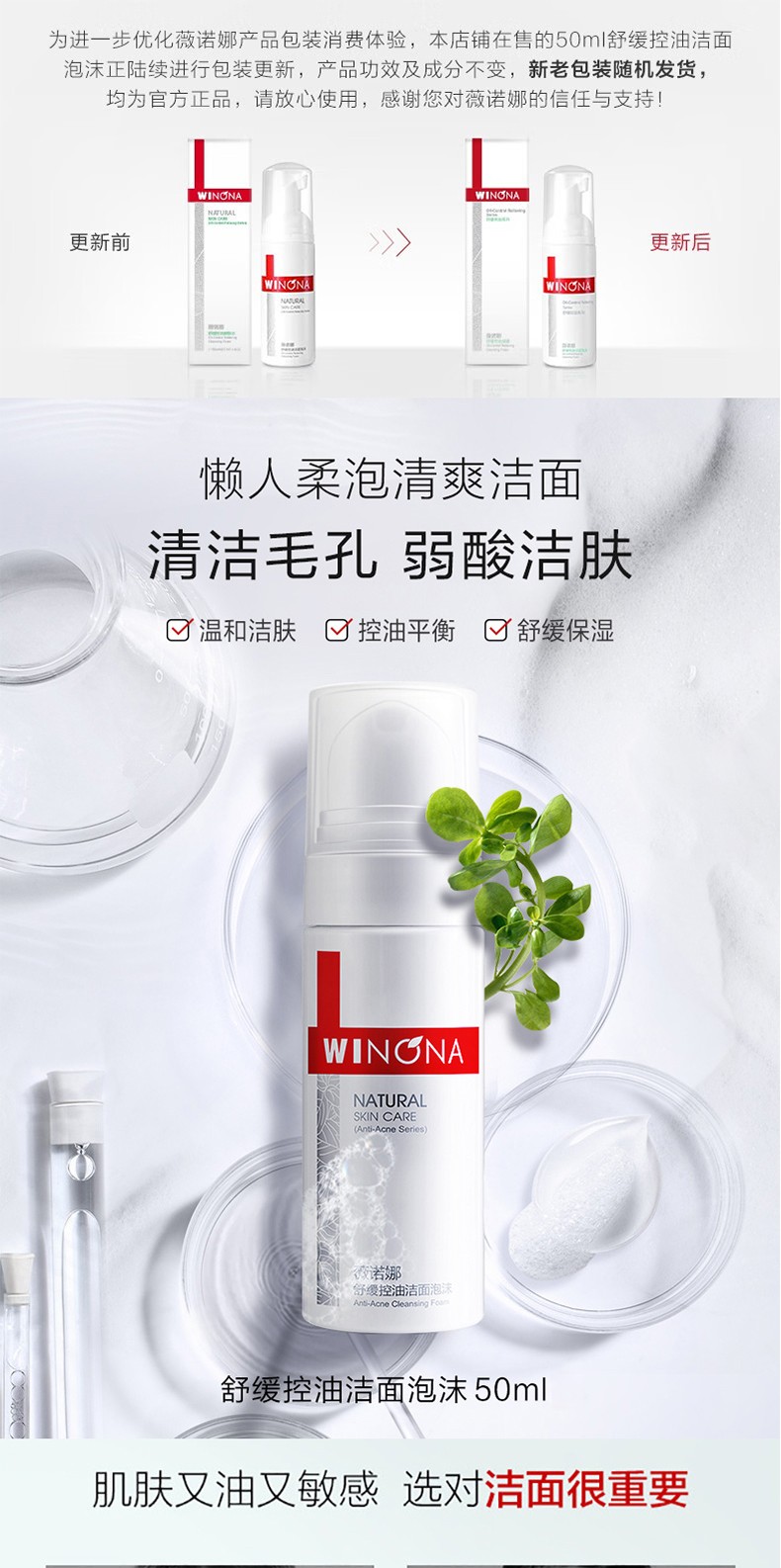 薇诺娜舒缓控油洁面泡沫 50ml