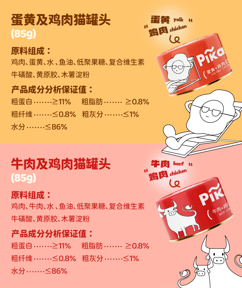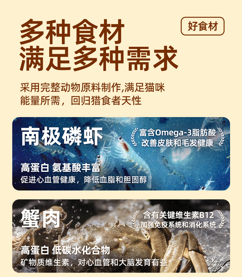 蟹肉及鸡肉味 南极磷虾及鸡肉味 牛肉及鸡肉味 蛋黄及鸡肉味 |