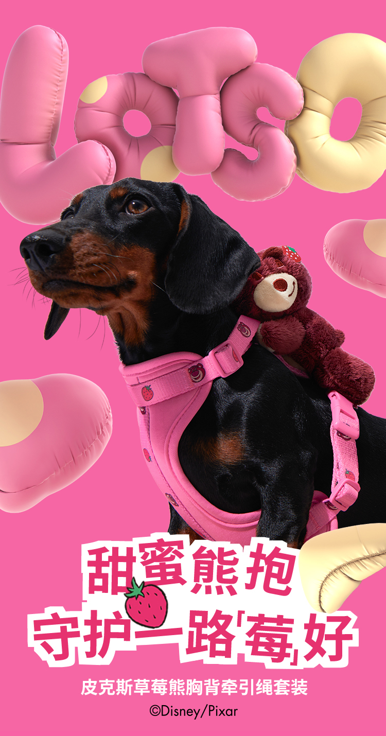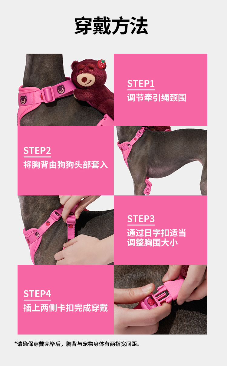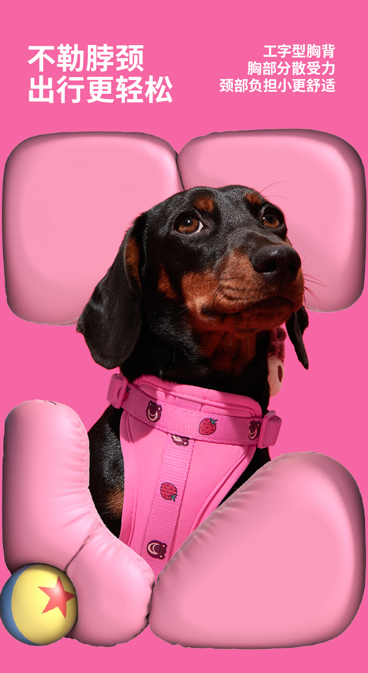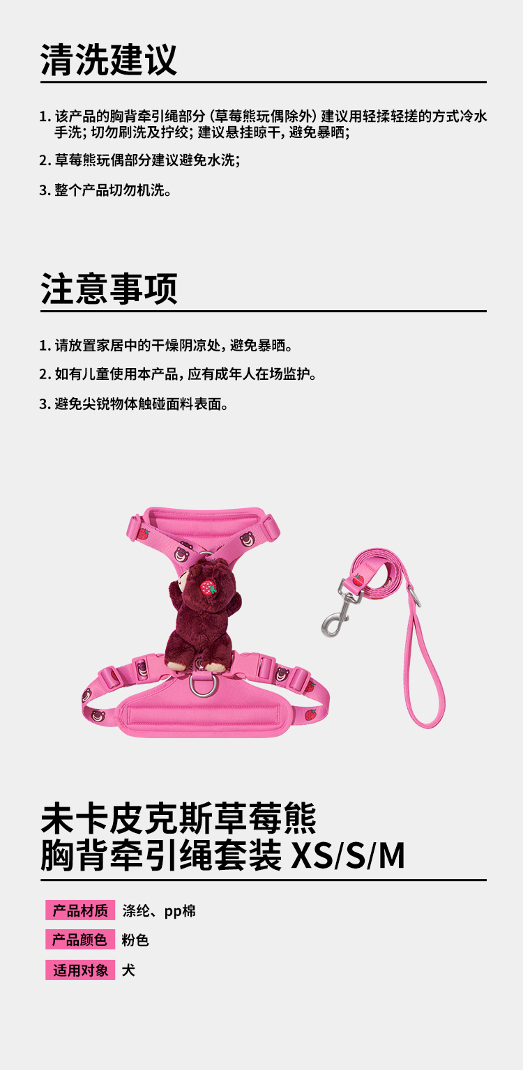未卡 皮克斯草莓熊胸背牵引绳套装 XS