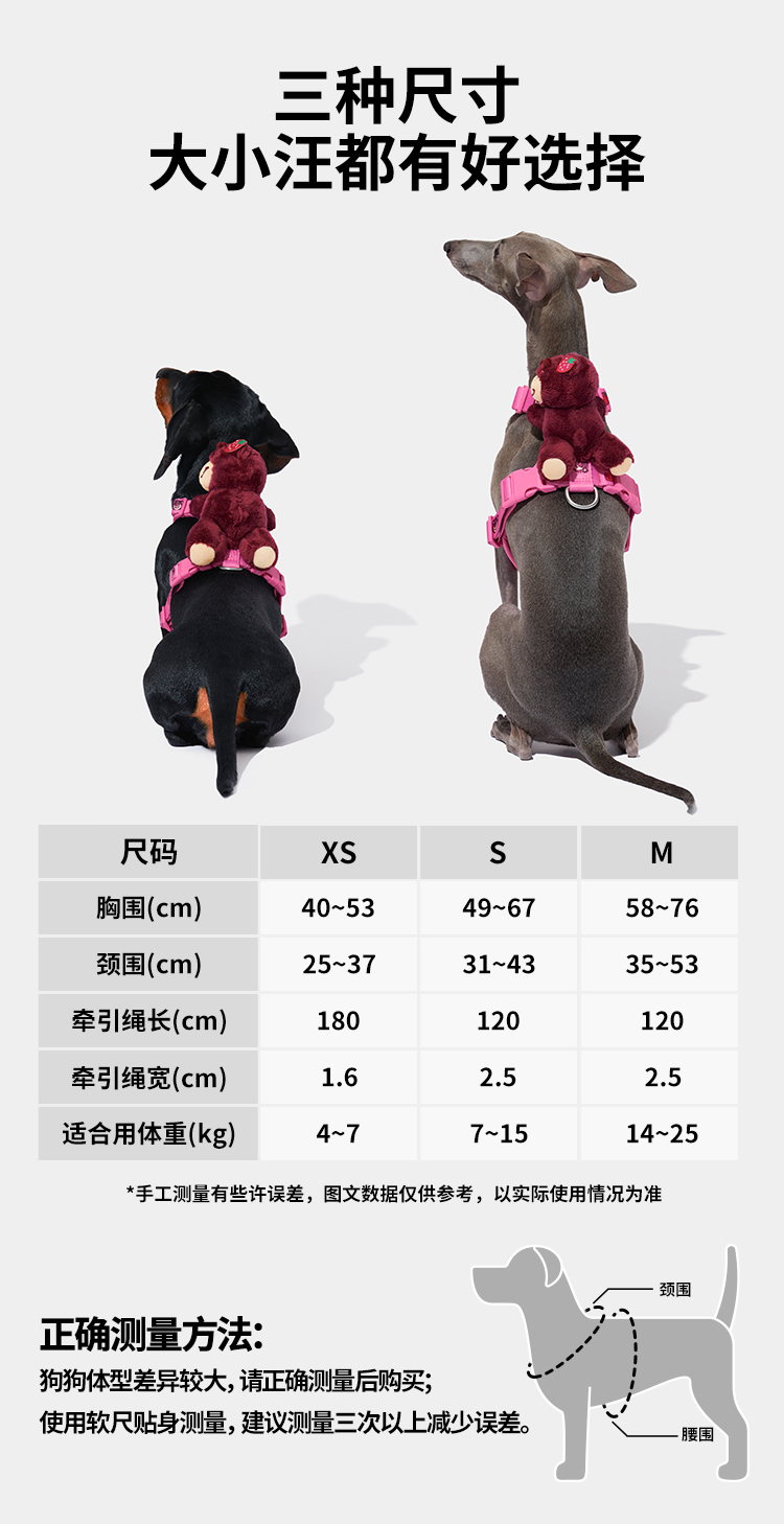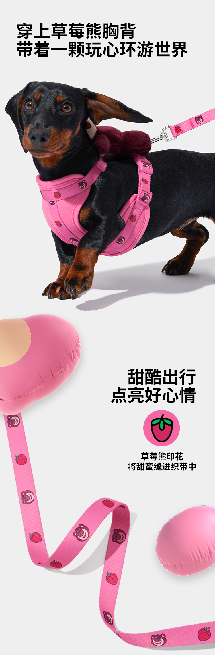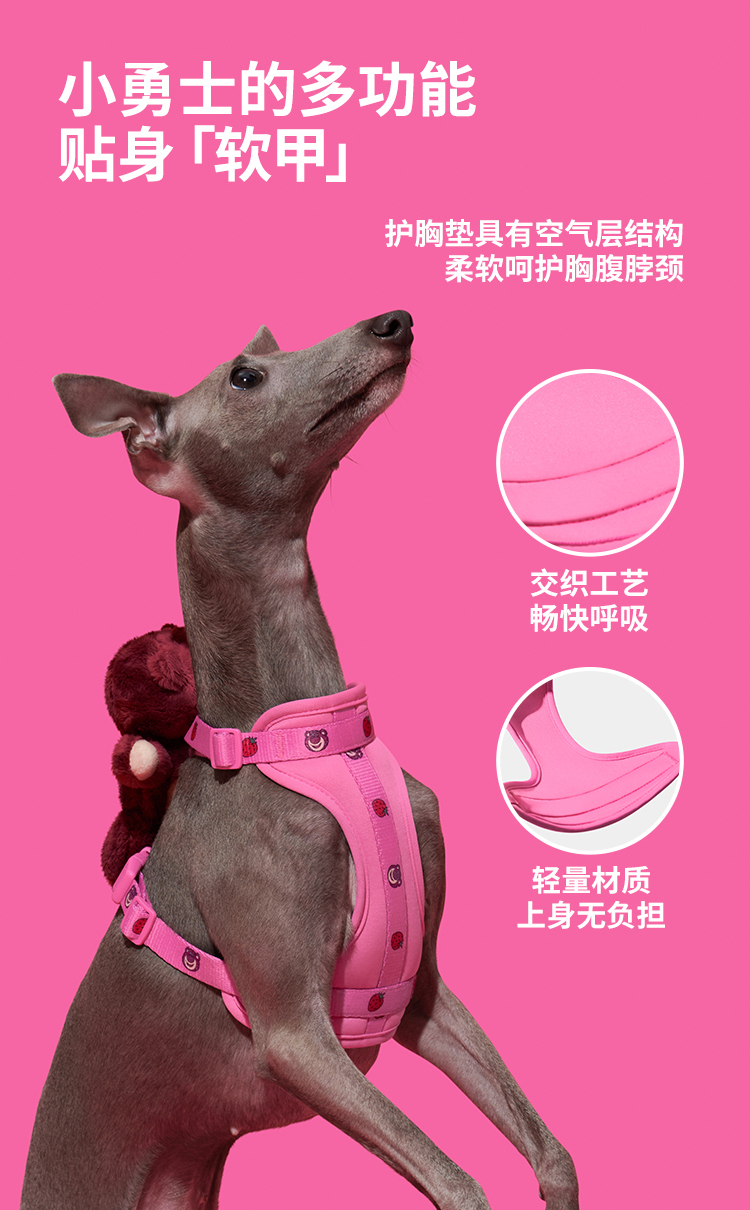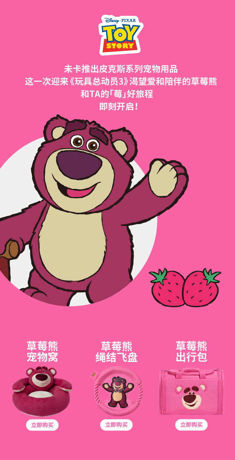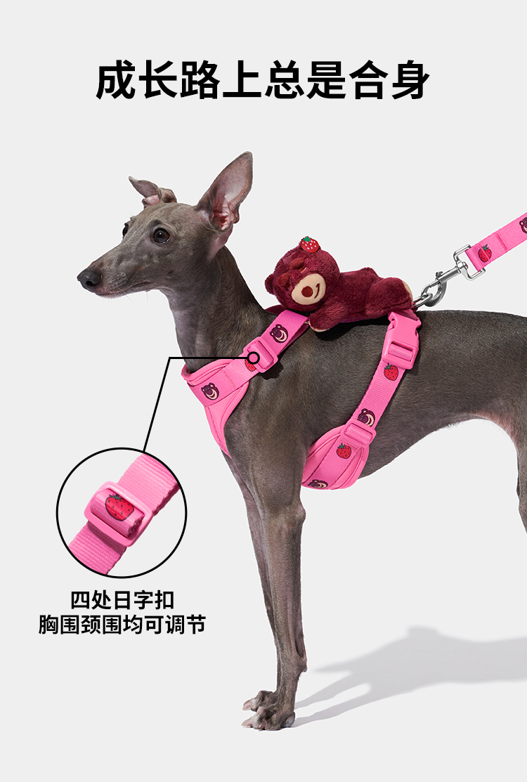 未卡 皮克斯草莓熊胸背牵引绳套装 M