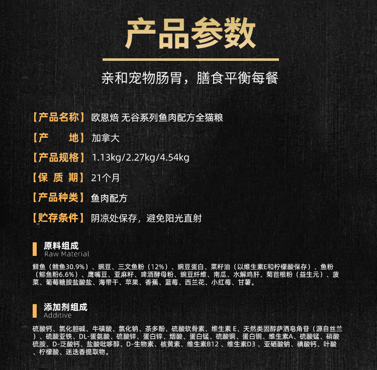 欧恩焙 无谷物鱼肉全猫粮 2.27kg