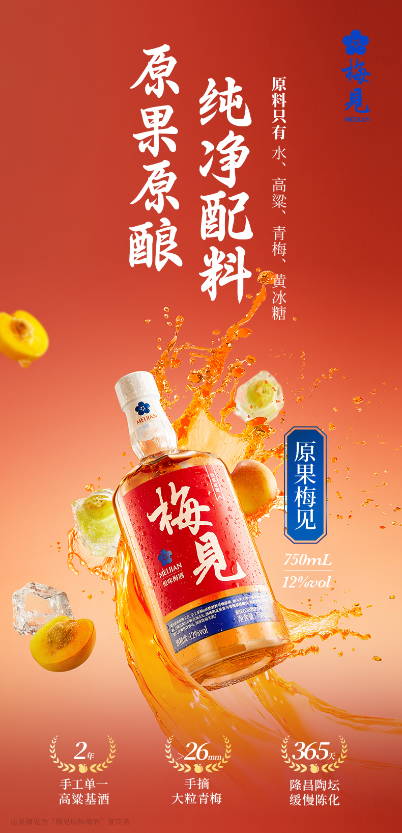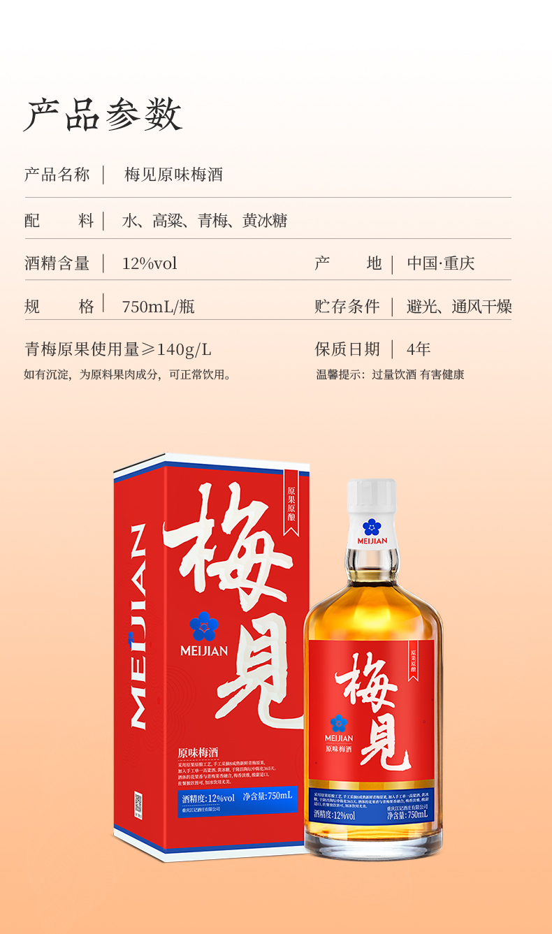 梅见 原味梅酒12%vol 750ml*1 赠金桂梅见150ml*1+玻璃杯*2