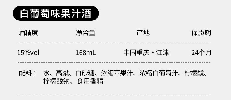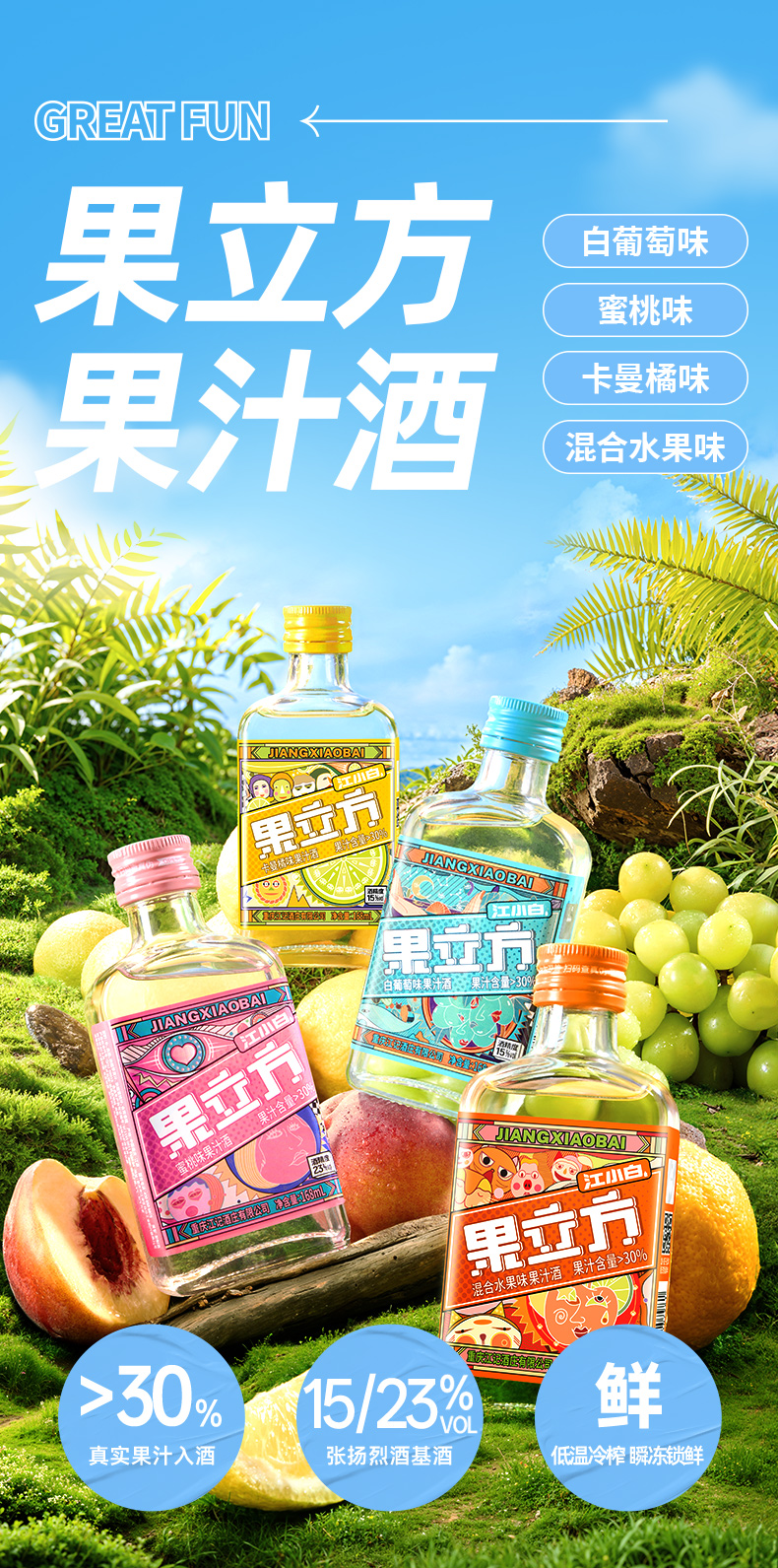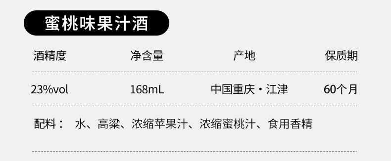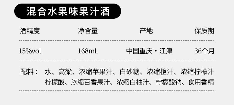 江小白果立方四口味白葡萄味15°+蜜桃味23°+卡曼橘味15°+混合水果味15° 168mL*4 赠可乐杯*1