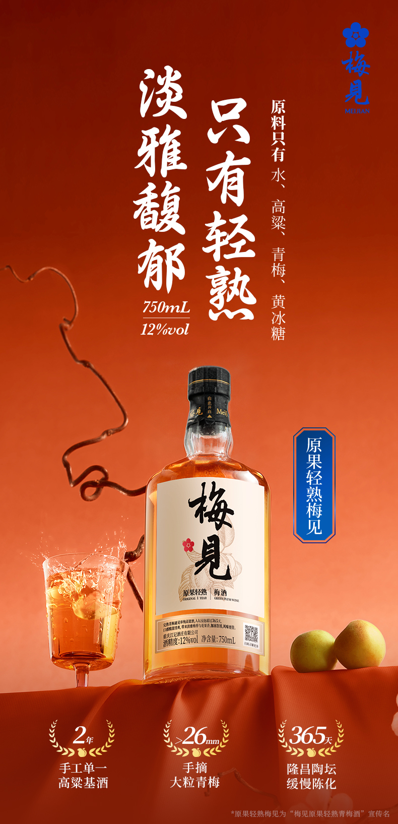 梅见 原果轻熟12%vol+时光梅酒青梅酒8%vol (原果轻熟750ml+时光梅330ml) 赠山岩杯*1