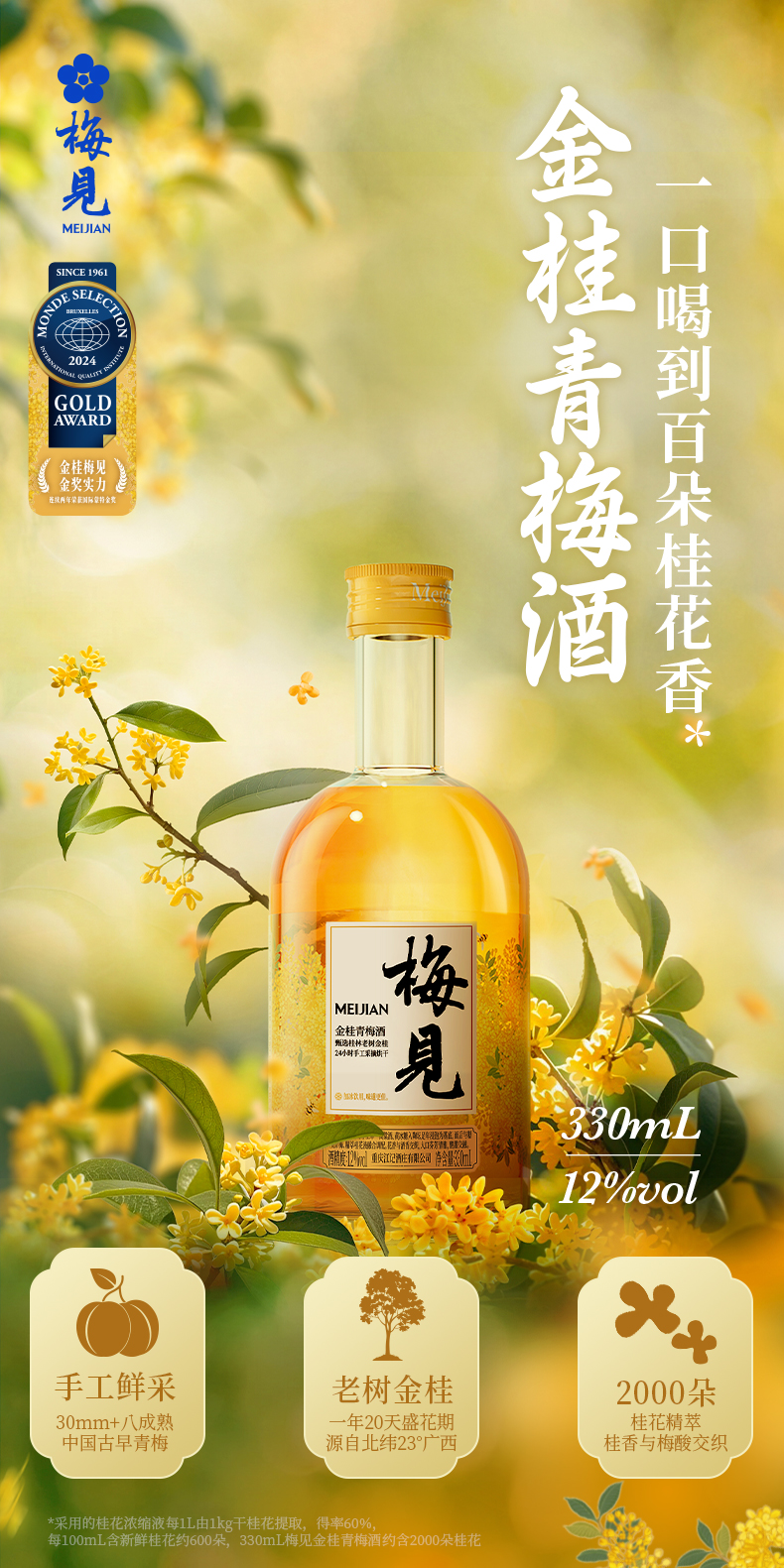 梅见 金桂梅酒12%vol 330ml*2 赠原果150ml*1